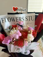 Presented in elegant shades of Black, red ,pink and white this bouquet makes a thoughtful and long lasting alternative to fresh flowers.
